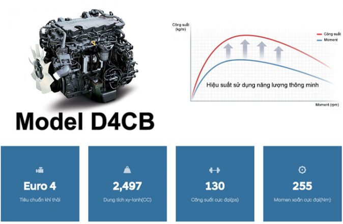 • Động cơ: HYUNDAI D4CB – CRDi