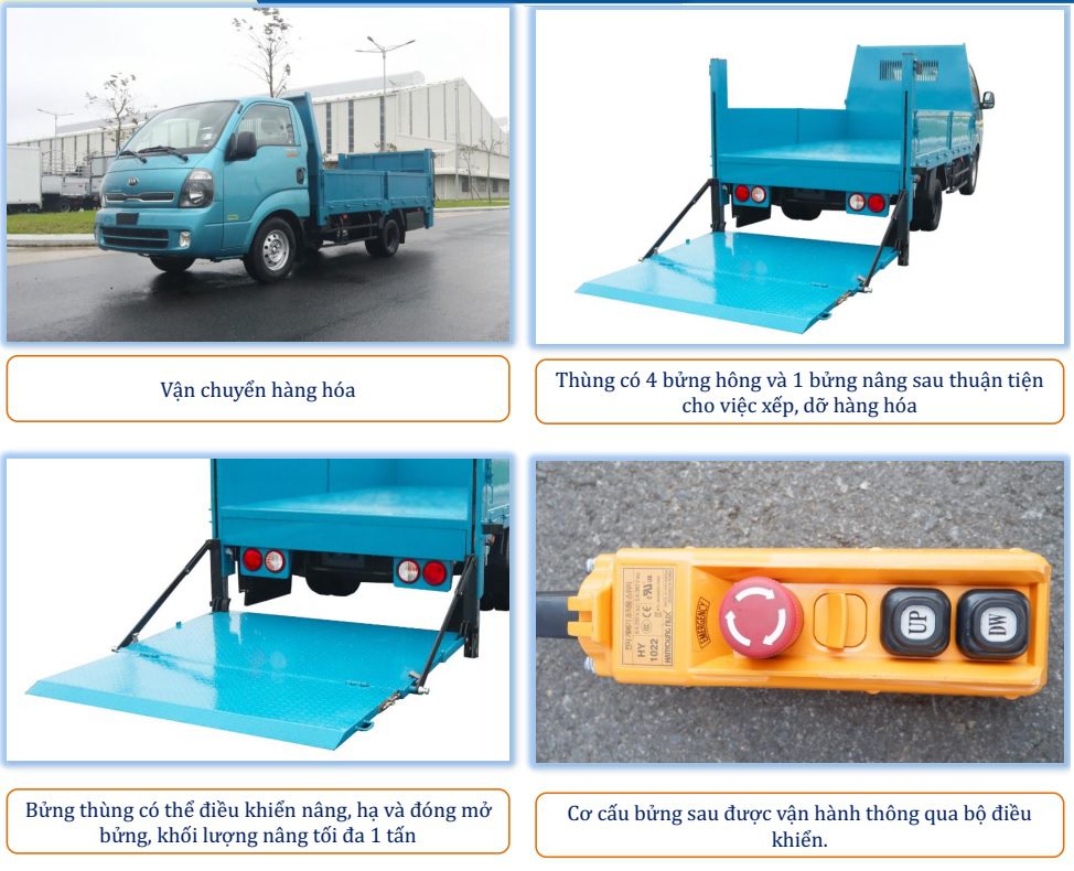 GIỚI THIỆU XE TẢI THÙNG LỬNG BỬNG NÂNG HẠ KIA K200